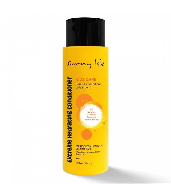 Sunny Isle Kids Care Extreme Hydrating Conditioner is deeply moisturizing and detangling for great manageability. It softens the hair while maintaining the curl pattern and delivers a smooth, hydrated finish to children's hair. Formulated to carefully condition coils and curls, it also works to prevent breakage and promotes healthy hair because our Kids Care conditioner is infused with Sunny Isle Jamaican Black Castor Oil. We have fortified this amazing fresh-scent children's conditioner with naturally nourishing and gentle coconut oil and aloe leaf juice to ensure healthy, soft, and manageable coils, waves, and curls. This is the perfect gentle care hair conditioner for children with an active lifestyle who may need to cleanse their hair more often than others. As a parent, you can rely on Sunny Isle Kids Care Extreme Hydrating moisturizing and detangling conditioner to help maintain moisture, sheen, elasticity, and strength in your kid's hair. For best results and to ensure their hair is looking and feeling silky smooth, we recommend that you follow this conditioning regimen with our Sunny Isle Kids Care Moisture-Rich Detangler and Leave-In Conditioner for styling and maintaining great coils, waves, and curls.